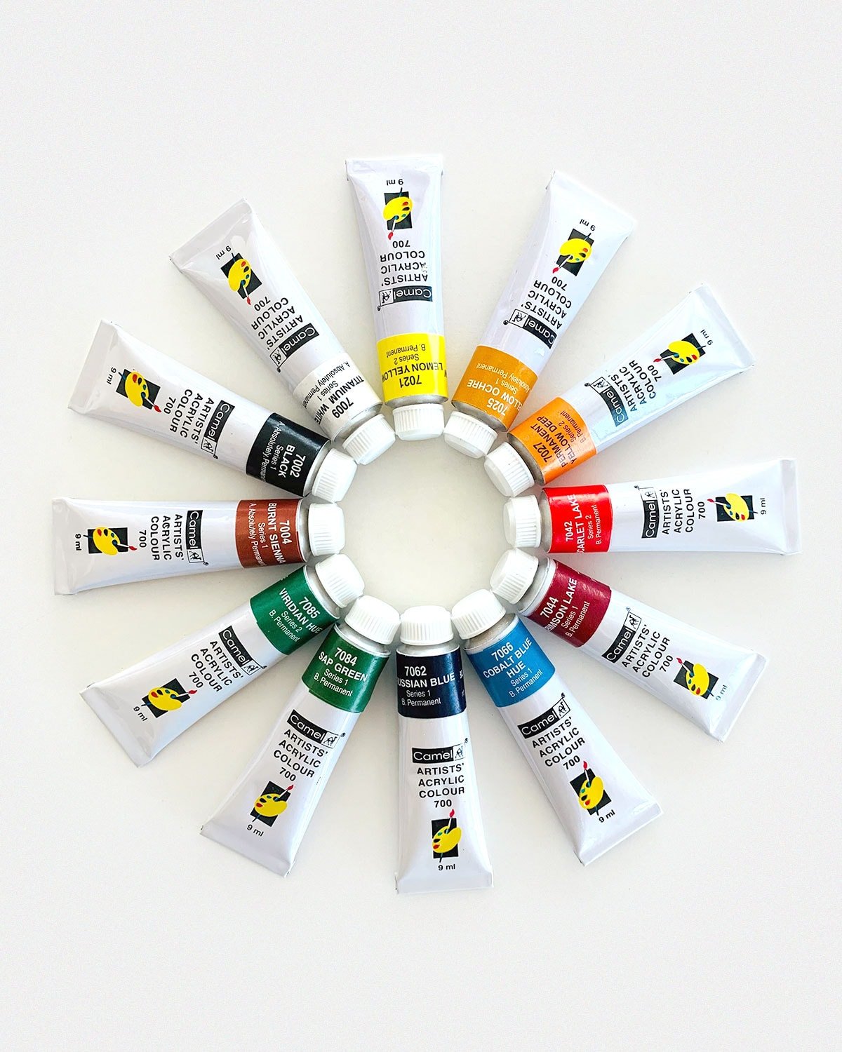 Camel Artist Acrylic Colours Assorted pack of 12 shades in 9 ml